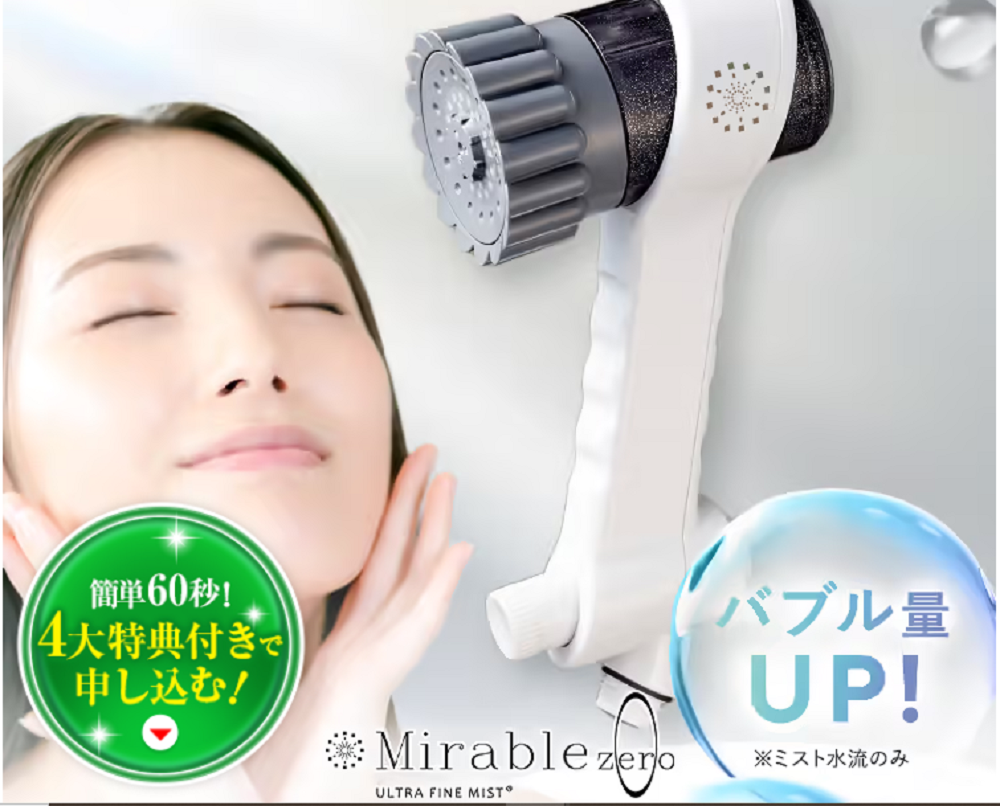 ミラブルZEROは、ウルトラファインバブル技術を採用した高機能シャワーヘッドです。目に見えないほど微細な気泡が水に含まれており、毛穴の奥まで入り込み、汚れをやさしく洗い流すことが特徴です。毎日のシャワーを変えることで、肌や髪のケアをサポートするアイテムとして注目されています。